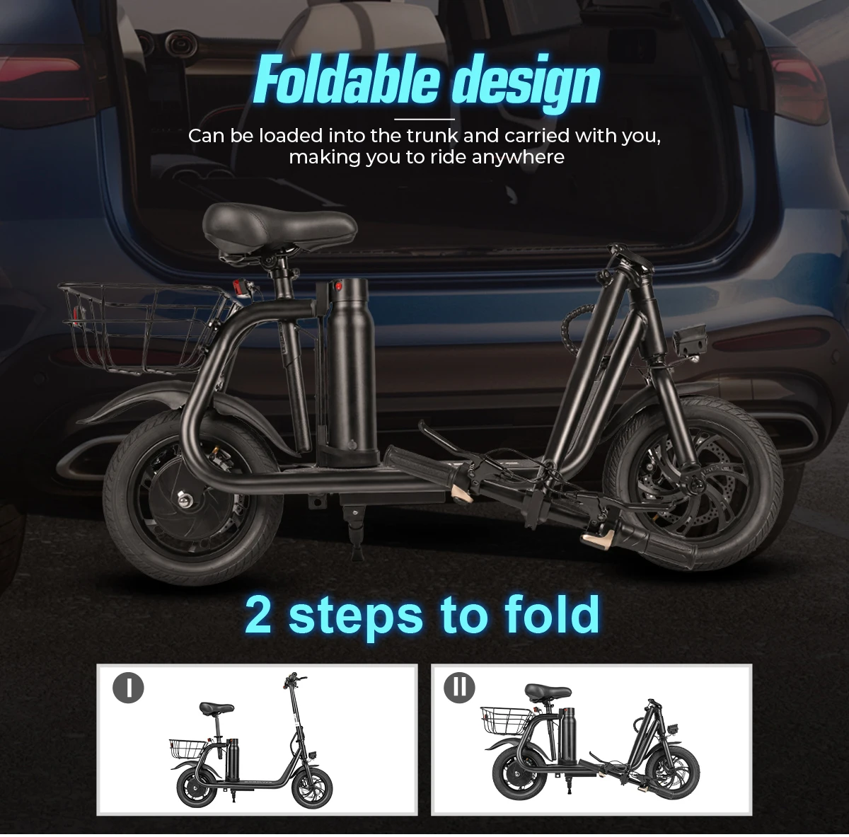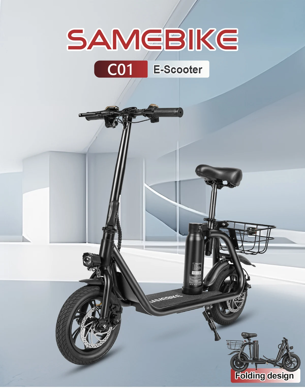 SAMEBIKE SM-C01 Folding E-Bike 36V 10.4AH Light Shopping In The City Electric Bicycle Aldult 12*2.2 inch Tires Electric Bike