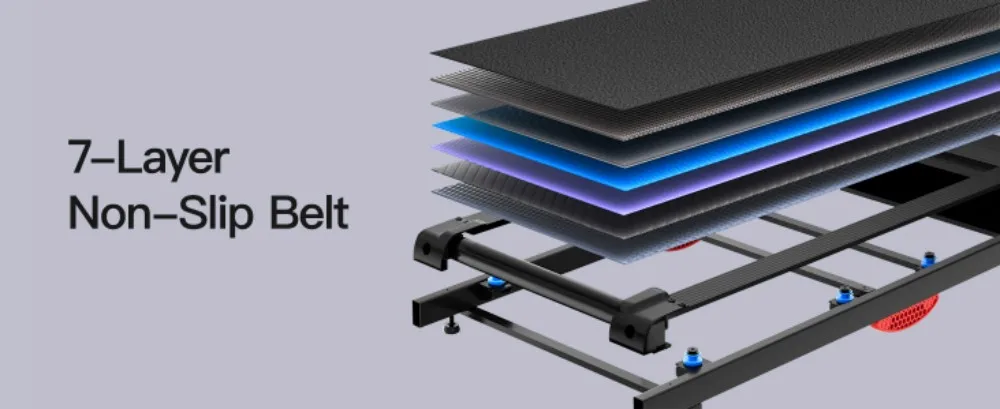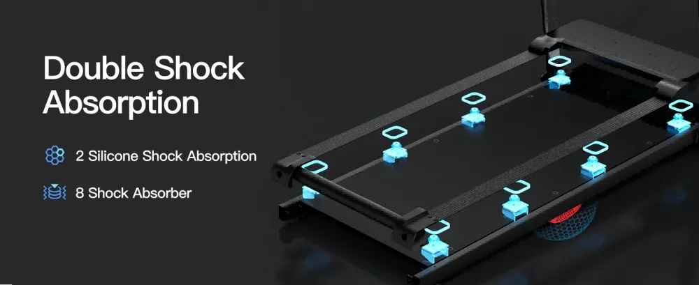 The walking treadmill provides a large track for free movement, and is equipped with 5 layers of the anti-slip belt, 6 silicone shock absorbers, plus 2 soft rubber pads. It can not only provide you with a comfortable exercise experience but also effectively reduce joint impact and protect your knees.